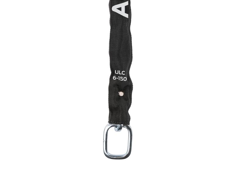 För extra säkerhet är det viktigt att fästa cykeln vid ett fast föremål. På så sätt kan en tjuv inte plocka upp din cykel och ta den till en lugn plats för att öppna låset. Den idealiska lösningen för det är ULC 6-150 Plug-in-kedjan. Med denna kedja styr du ramlåset och kedjan med bara en nyckel. ULC är en universell kedja och passar utöver AXA Solid Plus, Defender, Victory, Block XXL, Imenso Large och X Large ramlås, samt andra märken av ramlås.